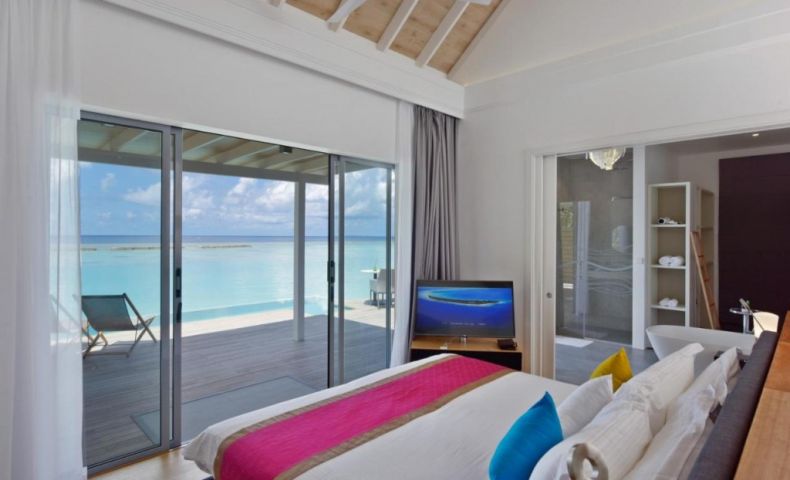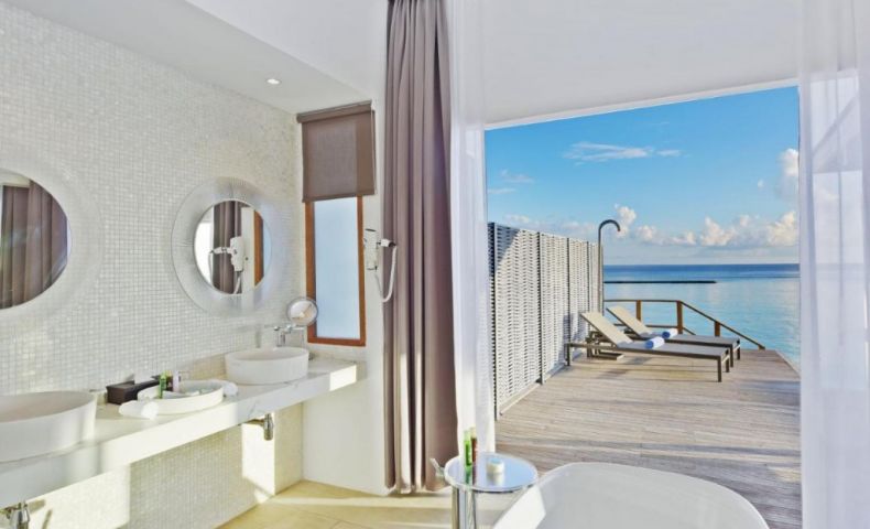 Тези разкошни водни вили, разположени на колони край рифа, предлагат пълно уединение, просторна спалня с голямо легло, баня с дъждовен душ и голяма двуетажна тераса с джакузи, шезлонги и панорамни гледки към Индийския океан.