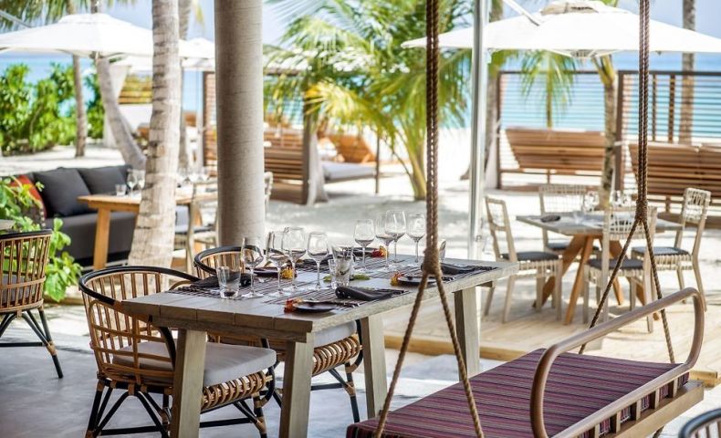 На територията: На разположение на гостите има 5 ресторанта. В The Lighthouse се предлагат средиземноморски тапас на фона на 360-градусов изглед, в The Fish Market ястията от прясно уловена риба са вдъхновени от Южна Азия, а в Café Umi се сливат различни междуконтинентални вкусове. Гостите могат да се отдадат на романтика с авторски коктейли в бар The Sunset Bar или да се презаредят в The Retreat, отделно място само за възрастни с изглед към тъмносинята лагуна. Dining by Design предлага персонализирани преживявания като круиз по залез. Организира се и гурме пикник, а филмовата вечер под звездите ще създаде незабравими спомени за цял живот.