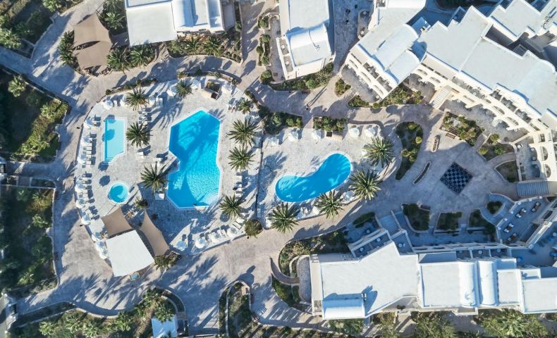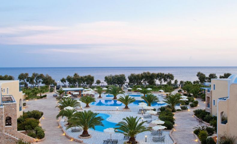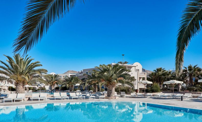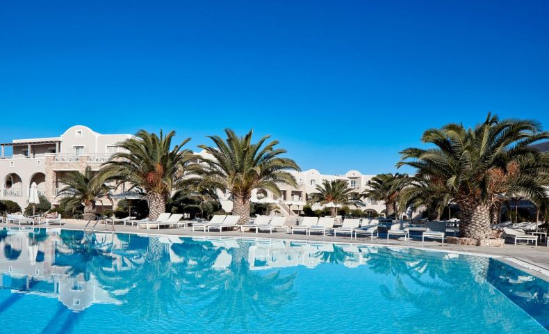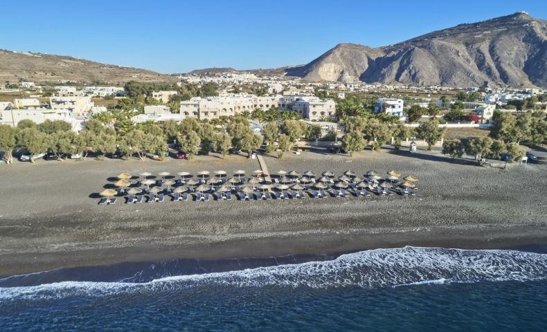 Едно от най-популярните ни места за настаняване в Периволос.Този крайбрежен хотелски комплекс е разположен на известния космополитен плаж на Периволос, на югозападната страна на Санторини. Той разполага с най-голямата зона с басейни от всички хотели в Периволос - Периса и неговата частна зона на плажа с черен пясък в Периволос с шезлонги и чадъри, които са безплатни за гостите на хотела. Хотелът е разположен в близост до туристическото селище Периса със своите магазини и таверни, както и дълъг плаж със скалата Меса Вуна, която се подава от водата.