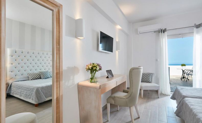 Хотелът разполага с общо 106 стаи. Всички стаи са оборудвани с климатик, телевизор, телефон, баня с вана, сешоар, мини бар, балкон с изглед към добре поддържаната градина или Егейско море.