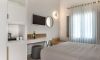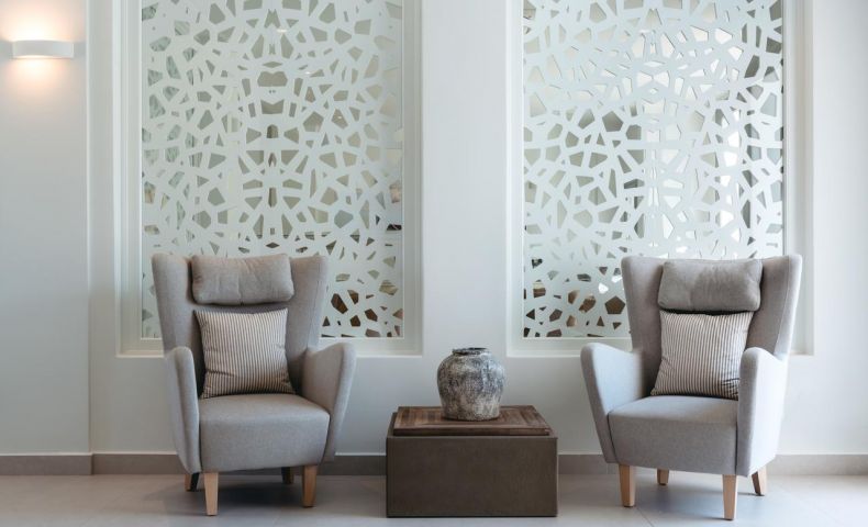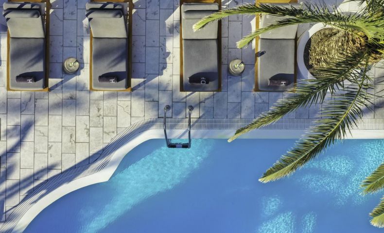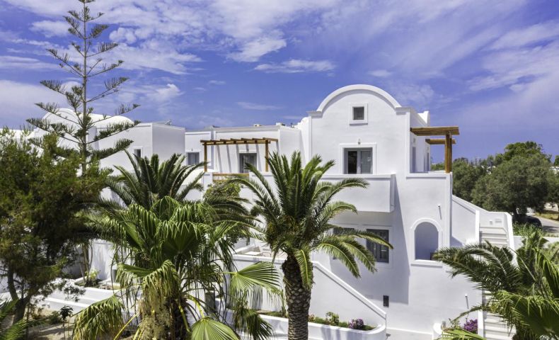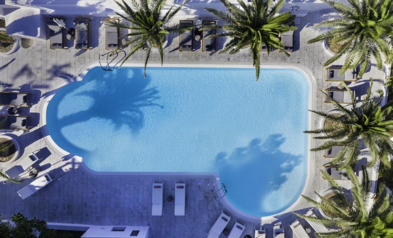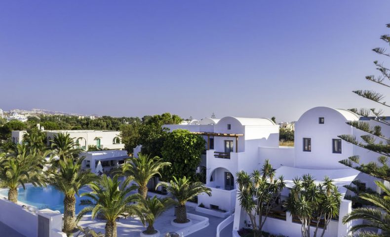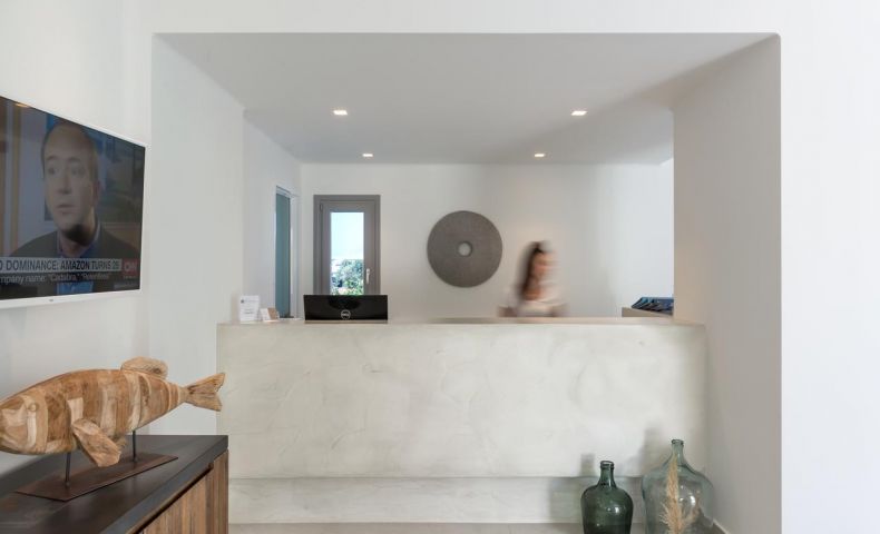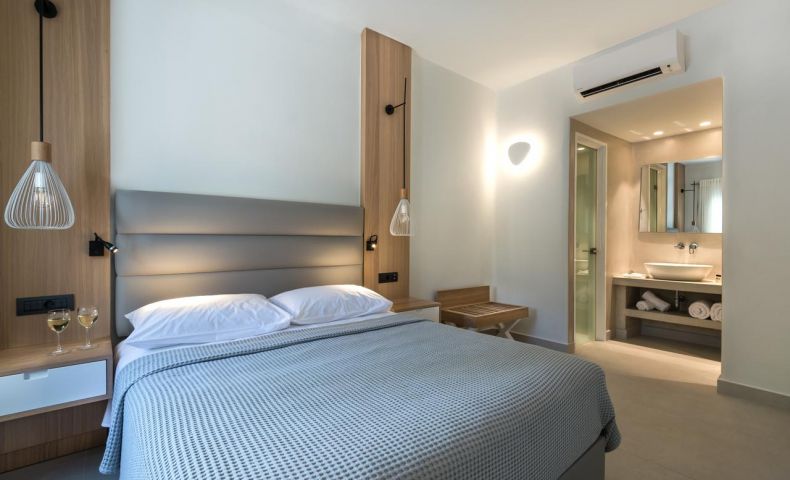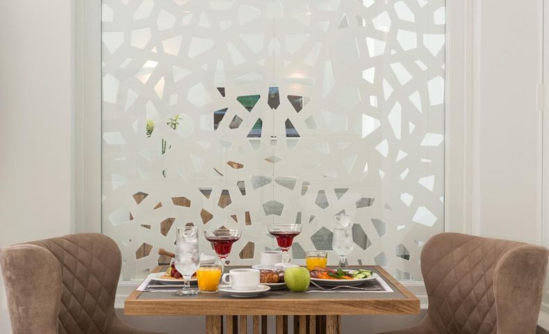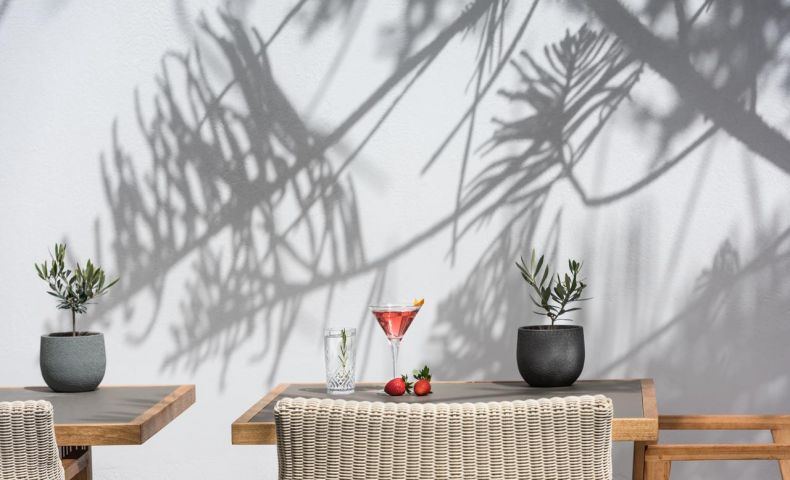 На терасата за закуска се сервира закуска с гръцко кисело мляко, традиционни специалитети и домашни сладкиши. В бара край басейна, заобиколен от палми, се сервират коктейли, кафе и леки закуски.