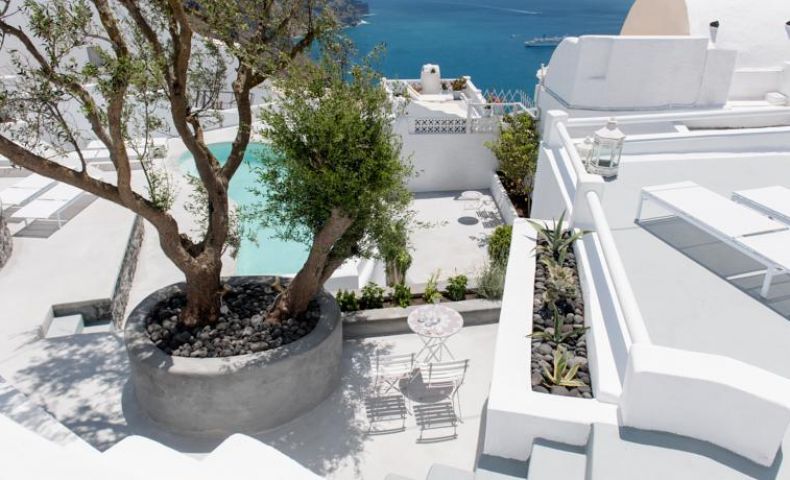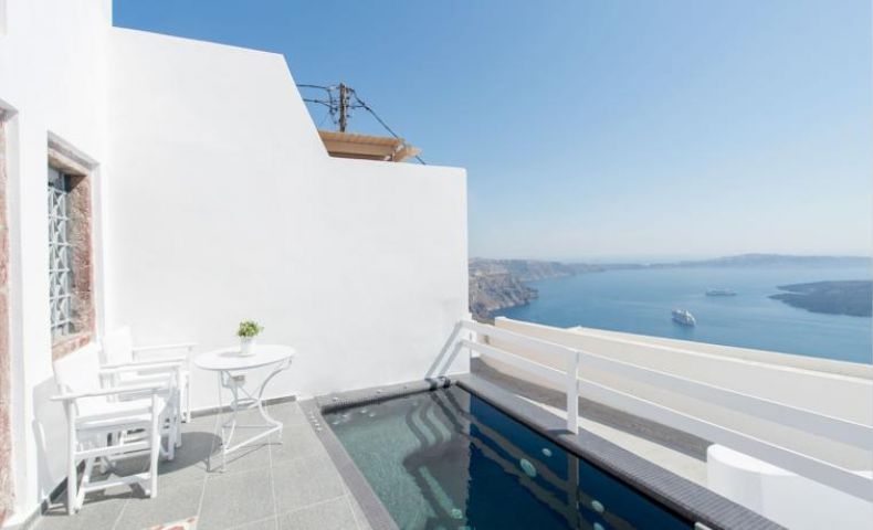 От хотела се разкрива прекрасна гледка към Калдерата на Санторини. Хотелът се намира в селцето Имеровиги на 2 км. от градовете Фира и Ойа.