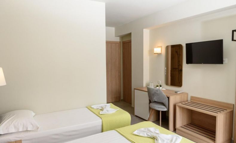Хотелът разполага с общо 55 стаи, от които Single/Double Room (14-16 м2), Double Superior Room (35 м2), Suite (40 м2). Всички стаи са оборудвани с климатик, телевизор, телефон, баня с душ, сешоар, минибар (срещу заплащане), балкон. Почистване на стаите и смяна на кърпите - всеки ден, смяна на спално бельо - 2 пъти в седмицата.