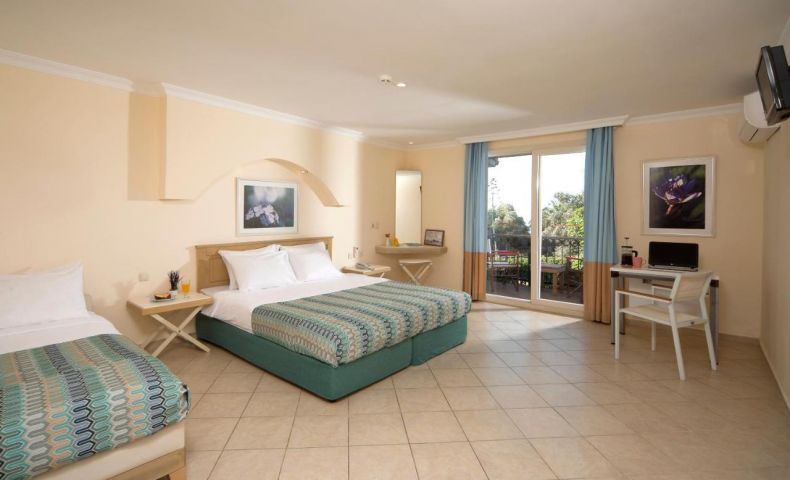 Хотелът разполага с общо 478 стаи: 25 Standard Rooms with Sea View (22 кв.м, тераса или френски балкон), 198 Standard Rooms with Pool and Garden View: Bathroom (22 кв.м, тераса или френски балкон), 9 Superior Rooms with Sea View (28 кв.м, (22 кв.м, тераса или френски балкон), 25 Superior Rooms with Garden View:(28 кв.м, балкон), 11 Family Rooms with Sea View (2 стаи, 1 баня, тераса или френски балкон, 33 кв.м), 171 Family Rooms with Pool and Garden View(2 стаи, 1 баня, тераса или френски балкон, 33 кв.м), 14 Pet-Friendly Rooms: (28 кв.м, тераса или френски балкон, удобствата за домашни любимци: храна, купа за вода, лакомства и торби за отпадъци). Всички стаи са оборудвани с климатик, телевизор, телефон, баня с душ, сешоар, мини бар (платен), сейф (платен), тераса или френски балкон. Почистване на стаите - всеки ден, смяна на спалното бельо и кърпите - 2 пъти в седмицата.