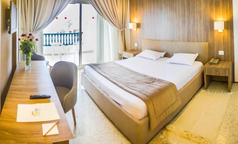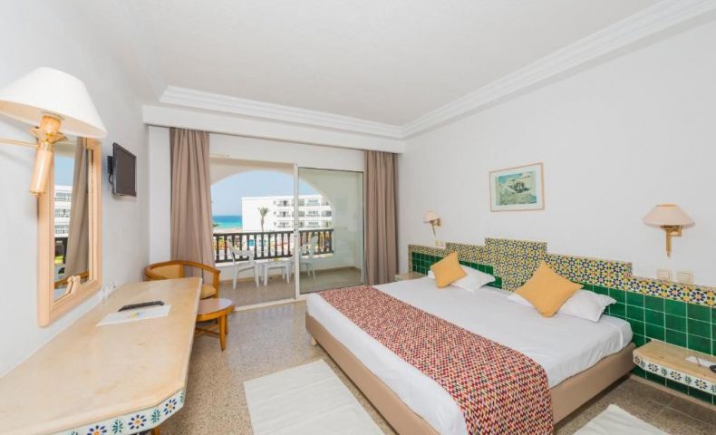 В стаите: Хотелът разполага с 504 стаи, разпределени в три сгради, като основната сграда има два асансьора - Standard Room (26 кв.м), Standard Room Sea/ Pool View (29 кв.м), Family Room Garden View (38 кв.м), Connecting Room (стаи със свързана врата), Connected Room Sea & Pool View (стаи със свързана врата и морска гледка или гледка басейн) и Suite Sea View (60 кв.м с хол). Всички стаи са оборудвани с климатик, телевизор, баня с душ/вана, сешоар, тоалетни принадлежности, минибар, сейф (платено), балкон или тераса. Почистване на стаите- всеки ден.