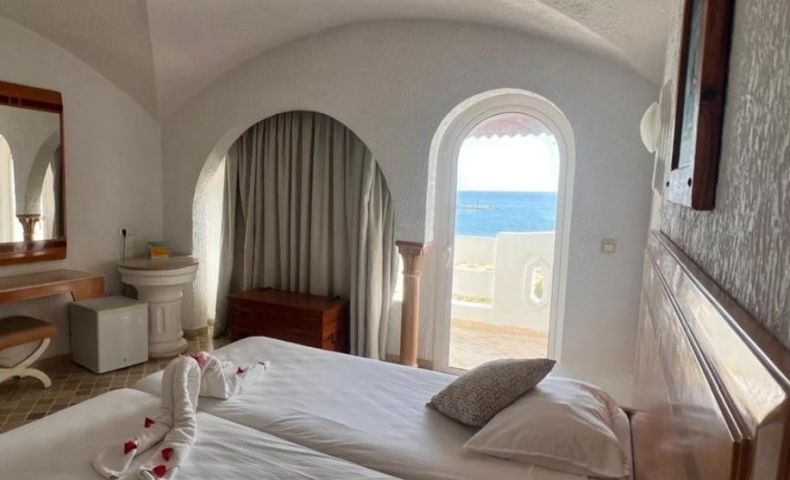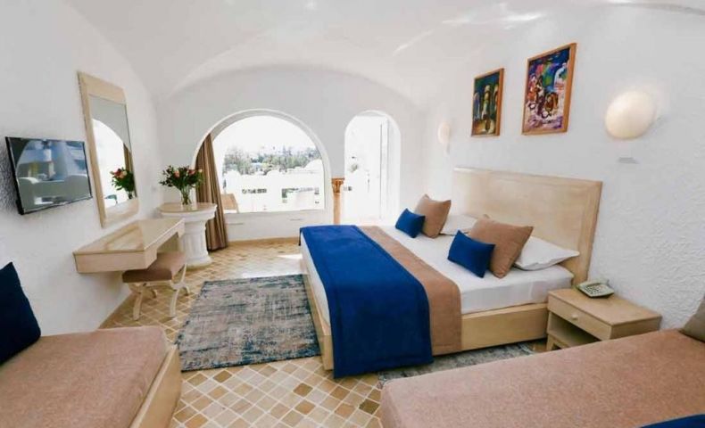 В стаите: Хотелът разполага с 245 стаи, разположени в четириетажна сграда с пет асансьора - Standard Room, Sea View Room, Pool View Room. Всички стаи оборудвани с климатик, телевизор, мини бар (празен), сешоар, сейф (срещу заплащане), баня, балкони или тераса. Почистване на стаите - всеки ден.
