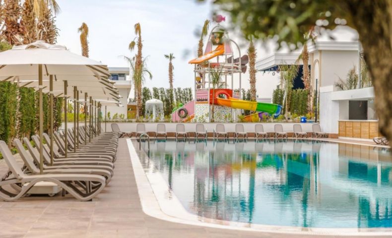 Разположен на 114 км от летище Анталия, 15 км от центъра на града, 80 м до автобусна спирка. Намира се на 50м от собствената си плажна ивица.