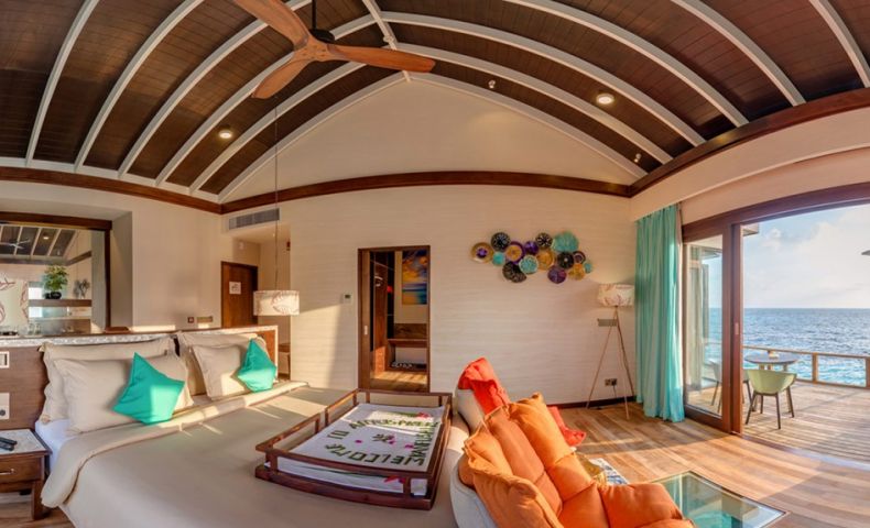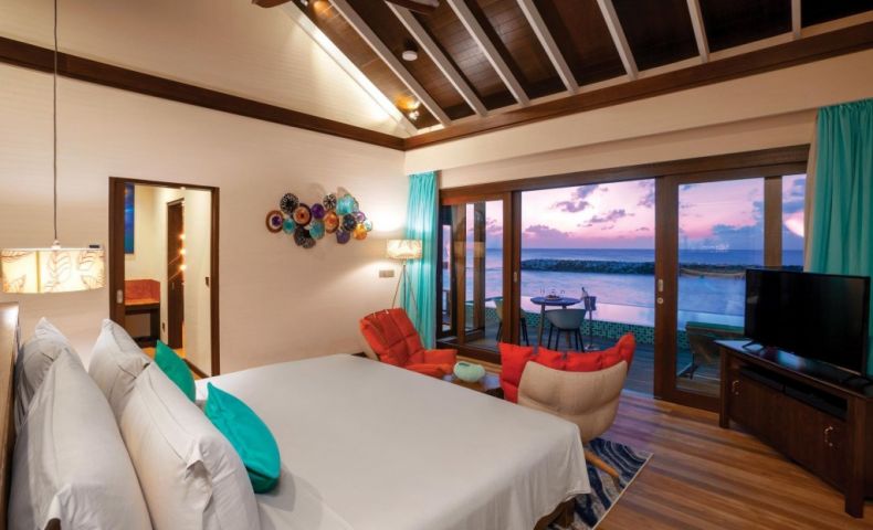 Вълшебните водни вили, идеални за романтично бягство или мечтан меден месец на Малдивите, се простират покрай кристално чиста лагуна. За 2 възрастни и 2 деца или 3 възрастни и 1 дете, с 1 легло King, площ 103 м².