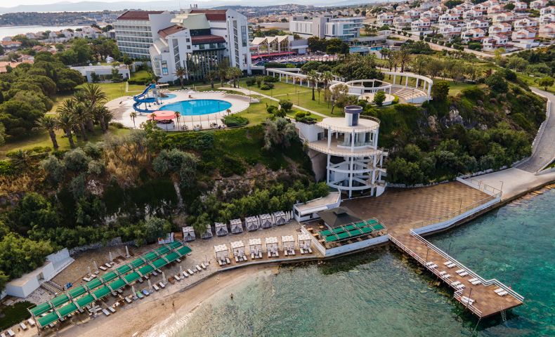 Хотелът се намира на 90 км от летище Измир, на 4км от центъра на Чешме, на 10 км от Алачатъ. Хотелът предлага уникална природа, чисто море и прекрасна гледка към остров Хиос.