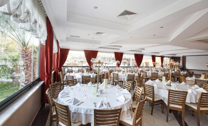 Основен ресторант, 3 бара, 1 открит, 1 закрит и 1 детски басейни, дискотека, водна пързалка, амфитеатър, магазини, SPA център, 2 конферентни зали, паркинг. За децата: Детски басейн, водна пързалка, детска площадка, Мини-клуб (4-12г). Безплатни услуги: Фитнес, плажен волейбол, баскетбол, анимационна програма, интернет (в лоби). Платени услуги: СПА център, сауна, турска баня, джакузи, масаж, пилинг, фризьор, магазини, химическо чистене, обмяна на валута, билярд, игрални автомати, моторни водни спортове.