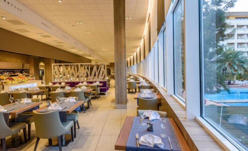 На територията на хотела: ресторанти които предлагат всякакви видове храни-шветски маси, а ла карт и снак бар, основен бар. Няколко басейна-2 големи вътрешни басейна-единият е минерален.1 голям открит за деца и възрастни. Фитнес-безплатен и тенис кортове. Хранителен магазин, Сауна и спа с различни пруцедури-срещу доплащане. Игрални площадки и анимации за децата и възрастните. (Вечерни програми и отделно анимационни програми за деца).