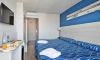 В стаите: Всички стаи са климатизирани, с балкон или тераса и могат да бъдат с едно или две двойини легла, като настаняват максимум четирима пътуващи.