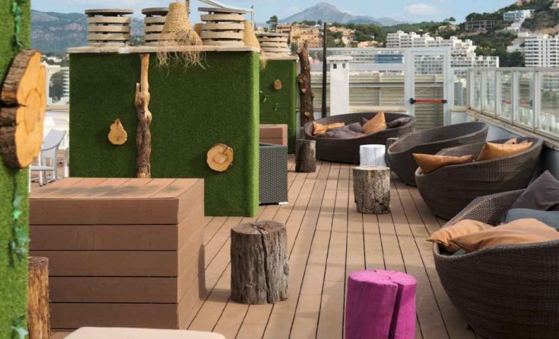 На територията на хотела: Бюфет-ресторант Корал- предлага интернационална кухня и испански специалитети. 2 басейна с шезлонги и чадъри, разположени сред градини от кипариси и палми. Sky Bar, където ще се насладите на привилегирована гледка към залива на Санта Понса и различни анимации с DJ, музика на живо и коктейли. Spa с климатизиран вътрешен басейн, сауна, джакузи, фитнес зала, възможност за различни козметични процедури. Лоби бар, който предлага коктейли, междинни хранения и вечерни анимации. Boutique Gourmet del Sol, където ще можете да изберете и отнесете за спомен ексклузивни продукти от острова, със седмични дегустации. Всякакъв вид колелета и аксесоари за колоездене под наем, паркинг за велосипеди и ремонт (услугите са срещу допълнително заплащане и са предоставени от външна компания Rad Internacional.) Безплатен паркинг за гостите на хотела.
