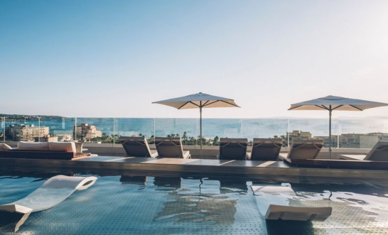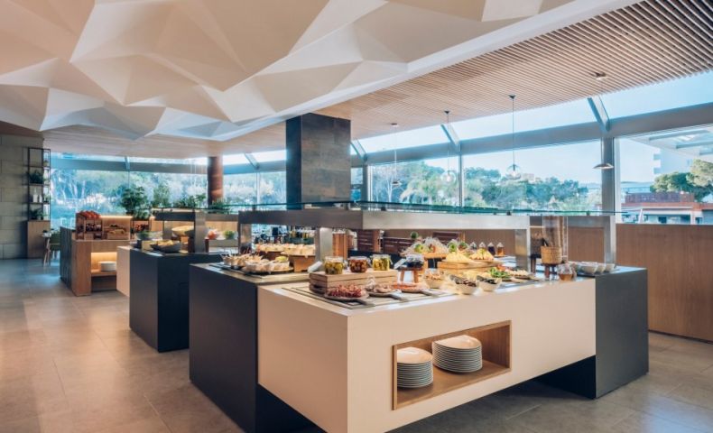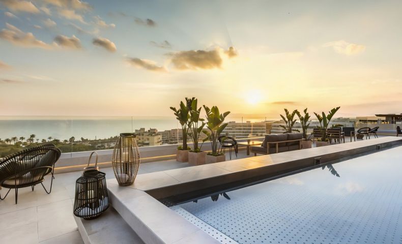 На територията: Освен с невероятните гледки към Средиземно море от панорамната и слънчева тераса, хотелът разполага с основен ресторант със сутрешен бюфет и разнообразие от барове включително рууфтоп бар , пуул бар, снак бар и кафене. За релаксация хотелът предлага с 3 басейна - басейн на покрива със зашеметяваща гледка, закрит басейн, утопляем басейн и джакузи. Спа центърът разполага със сауна, парна баня и възможност за различни масажни процедури. В хотела има и добре оборудван фитнес център плюс зала за допълнителни тренировки. Хотела предлага възможности за наемане на автомобили и велосипеди.