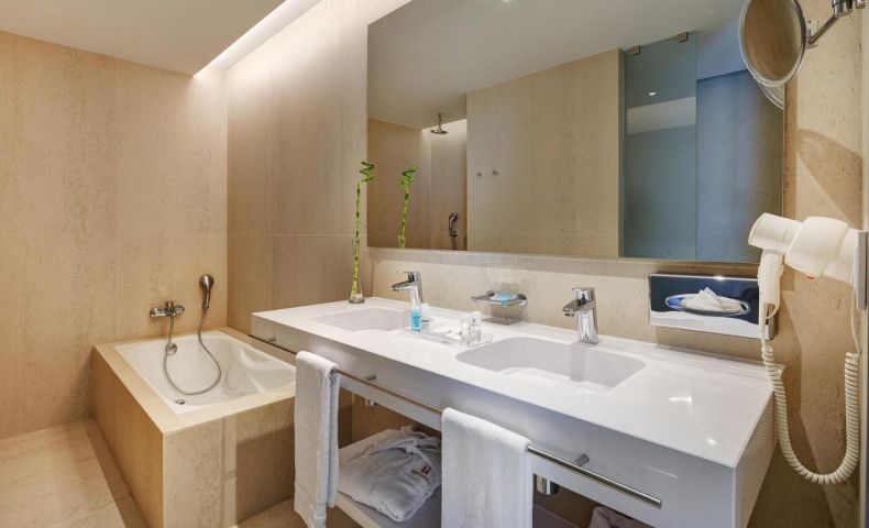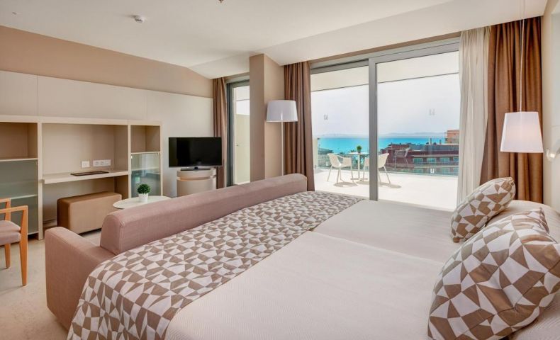 Хотелът разполга с основна сграда на шест етажа и 368 стаи. Типове стаи: стандартна (33 кв.м), стандартна с гледка към басейна (33 кв.м), стандартна с глекда към морето (33 кв.м), Junior Suite (38 кв.м) , Junior suite с гледка към басейна (38 кв.м), Junior suite с гледка море (38 кв.м), Suite (50 кв.). Всяка стая е оборудвана с климатик, телевизор, телефон, wi-fi, сейф ( срещу заплащане), мини-бар (срещу заплащане), кафе машина (само в Junior Suite и Suite), балкон или тераса.