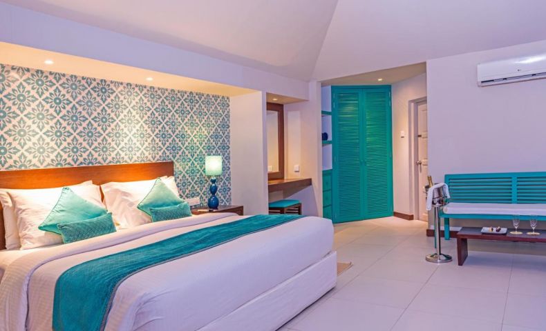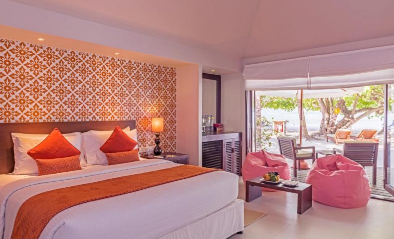 10 Sunset Beach Villa (59 м2) - разпръснати покрай отдалечените райони на атола, предлагат безпрепятствена гледка към океана и са обзаведени в цветни, съвременни теми.