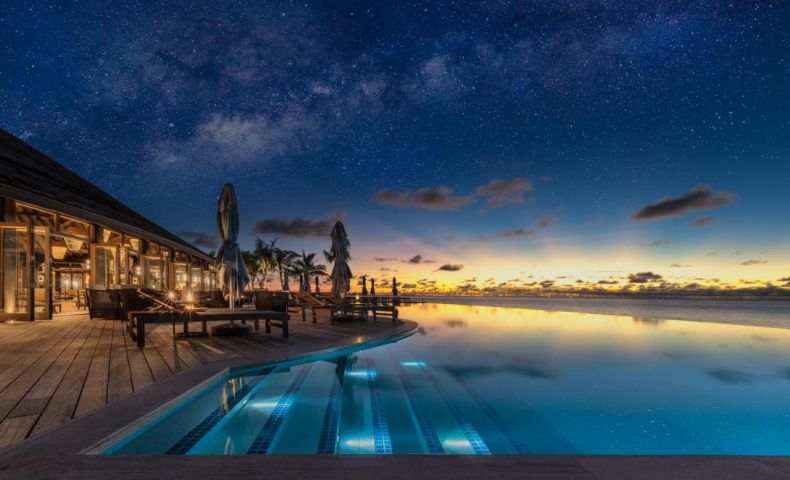 Бар Umi – открива се спираща дъха панорамна гледка към рифа и лагуната.