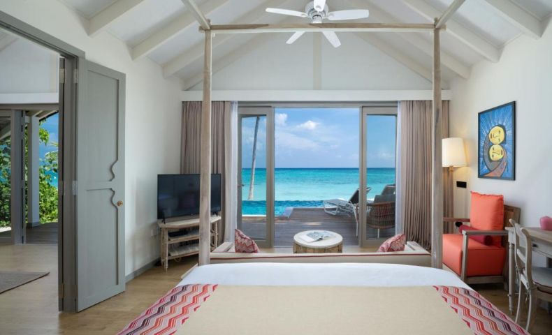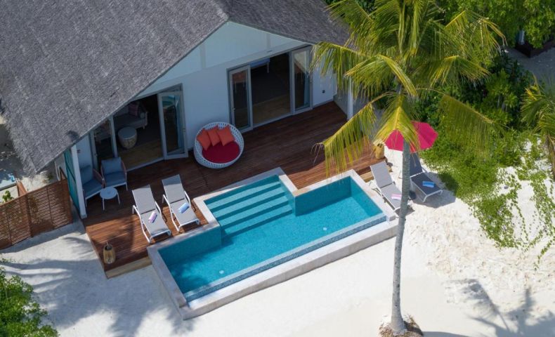 1 Two bedroom lagoon pool villa with slide (234 м2) - Разполага с басейн (24 м2) на верандата, хол на първия етаж с изглед към океана и с 2 големи бани.