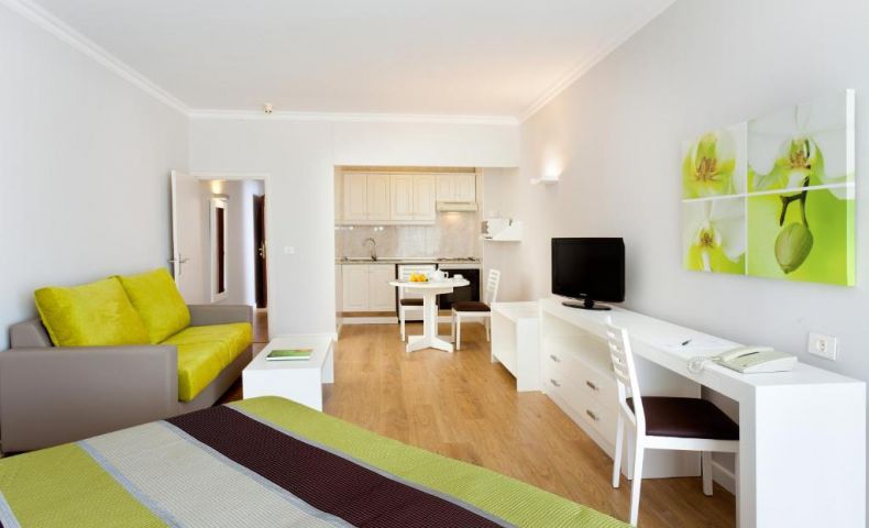 Хотелът предлага настаняване в студио или апартамент. Те разполагат с климатик, телевизор, телефон, сейф, сешоар, баня с вана или душ, wi-fi, балкон. Апартаментите имат всекидневна и спалня в отделни помещения.