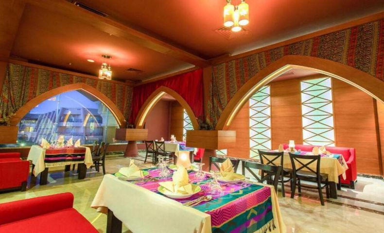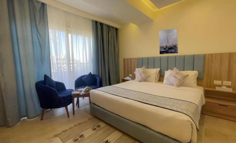 Построен в арабски стил, с модерно обзаведени стаи, разполага със собствен частен пясъчен плаж. Ползването на чадъри и шезлонги е безплатно.
