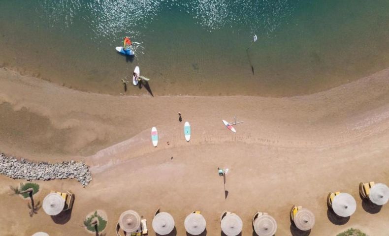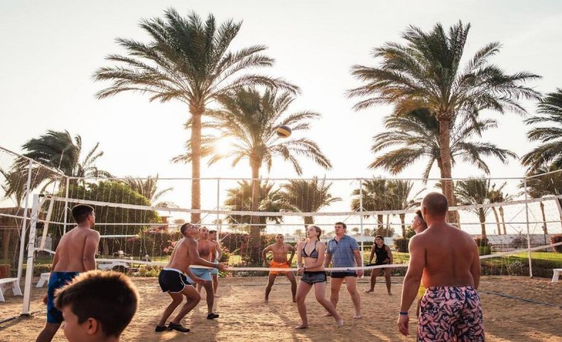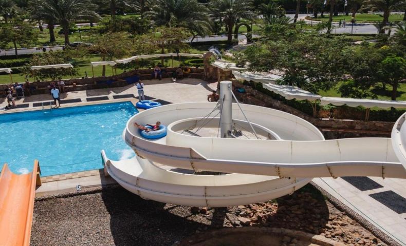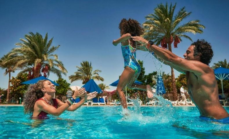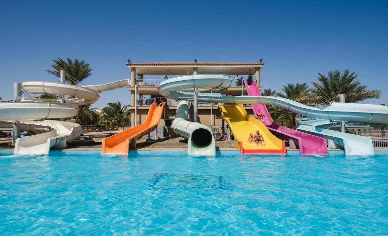 Desert Rose 5* разполага със собствен девствен пясъчен плаж с дължина от 1км, с 40 000 м² природна лагуна със златист пясък. Хотелът предлага на своите клиенти идеална атмосфера за забавления или просто да се насладят на прекрасния ненадминат климат на Червено море. Хотелът разполага с 4 плувни басейна, 1 с олимпийски размери, голям плувен басейн с палуби за слънчеви бани и бар край него, отопляем семеен плувен басейн и детски плувен басейн, специализиран за бебета и малки деца със собствен мини душ и мини столове. Като допълнение Аквапаркът предлага още и 6 водни пързалки.