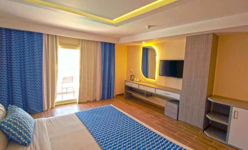 Приблизителна площ на помещението - около 25 кв.м. Разполага с телефон, сателитна телевизия, сешоар, сейф, мини бар - срещу допълнително заплащане, електрическа кана с чай и кафе, климатик, баня с тоалетна и тераса.