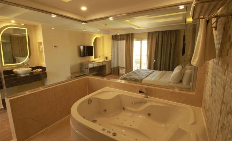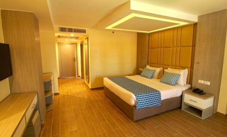 Приблизителна площ на стаята - около 28-32 кв.м. Разполага с телефон, сателитна телевизия, сешоар, сейф, мини бар - срещу допълнително заплащане, електрическа кана с чай и кафе, климатик, баня с тоалетна, балкон или тераса.