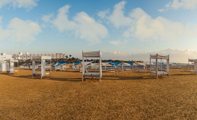 Собствен пясъчен плаж със залив и 3 плувни басейна, включително 1 за деца с чадъри, шезлонги с матраци, плажни огради за защита от вятъра, обслужване от бара, спасители на басейна и на плажа, кърпи за плажа и басейна, табели около басейна;