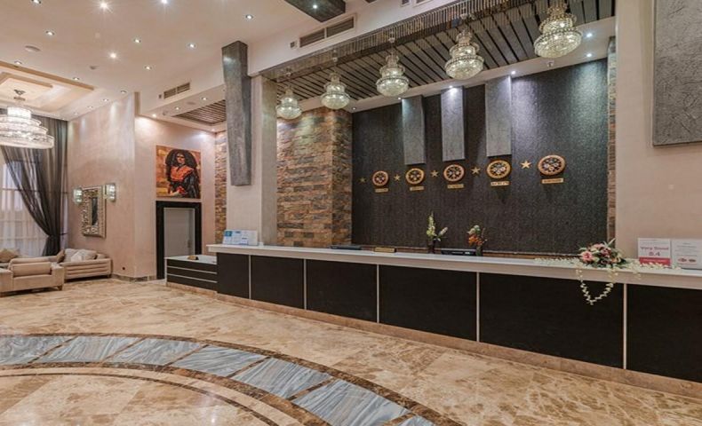 Комплексът е построен в арабски стил с модерно обзаведени стаи.