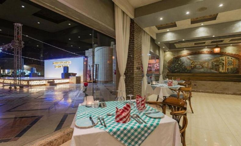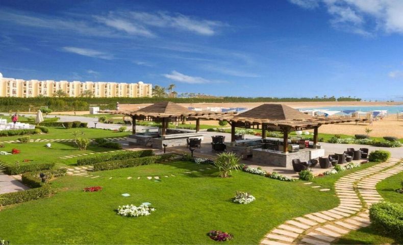 Комплексът е построен в арабски стил с модерно обзаведени стаи.