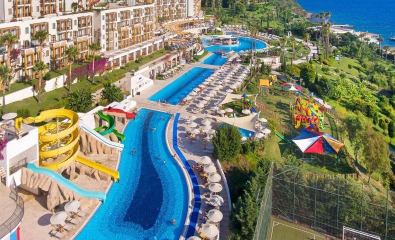 Хотелът се намира на 60 км. от летище Милас, на 25 км. от центъра на Бодрум, в района на Тургутрейс, на брега на морето с панорамна гледка към Егейско море. Разполага с обща площ от 50 000 m².