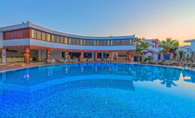 Очарователен хотел с прекрасна цветна градина, обширен плаж, басейн и семпъл дизайн, характерен за Бодрум!