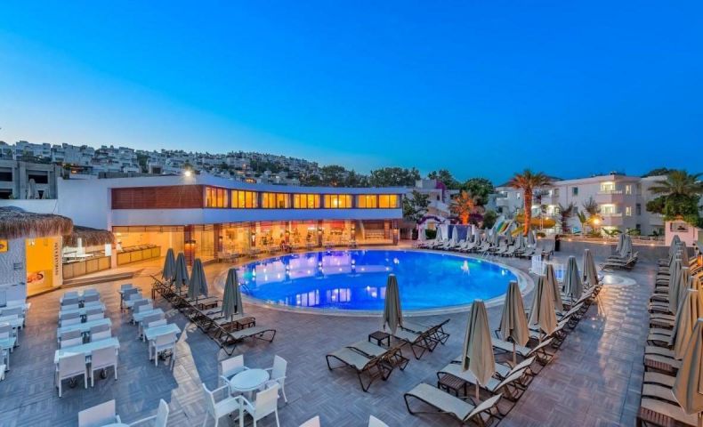 Bendis Beach Hotel 4* е декориран в син и бял цвят, които са специални за Бодрум, тъй като архитектурата в този район е украсена именно в тях. Хотелът разполага със 7 блока и All Inlcusive база на изхранване през летния сезон. Инфраструктурата позволява настаняване на хора с двигателни проблеми и стаи за непушачи.