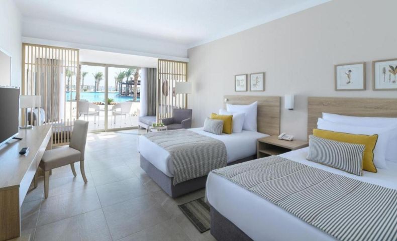 - SUPERIOR POOL & SEA VIEW- 29 кв.м, една стая с двойни или две единични легла, баня, балкон с изглед към басейна и морето.