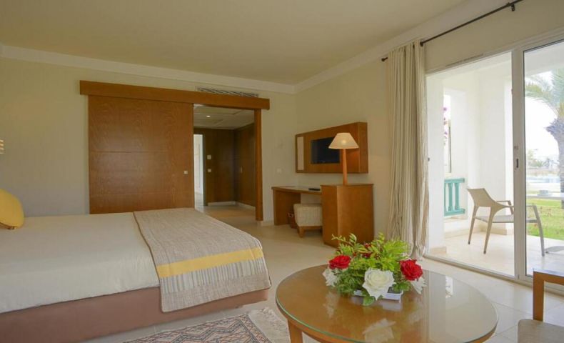 Бунгало - обща площ 42 кв.м, гледка към басейн или градина. Намира се в двуетажни бунгала. Разположени в непосредствена близост до плажа, до който имат директен достъп. Има отделна зона на плажа и собствен басейн с гледка към морето.