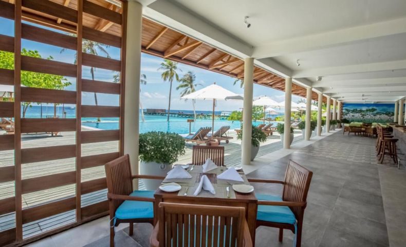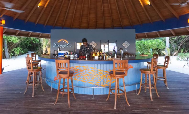 HARUGE BAR - Основният бар на острова, сервиращ набор от коктейли, бири и вина. Релаксираща и спокойна атмосфера през деня с широка външна палуба с изглед към безкрайния хоризонт и вечери с разнообразна развлекателна програма от музика на живо, викторини и много други.
