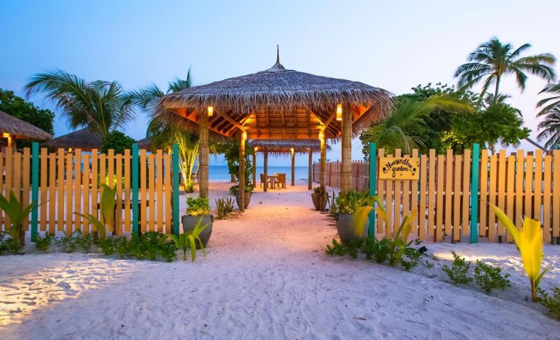 HUVANDHU GARDEN - Ресторант с многостепенни менюта по избор в романтична вечерна обстановка за специални поводи – в частни кабинки и заобиколени от тропическа растителност с шума на вълните, плискащи се по плажа като музикален фон.