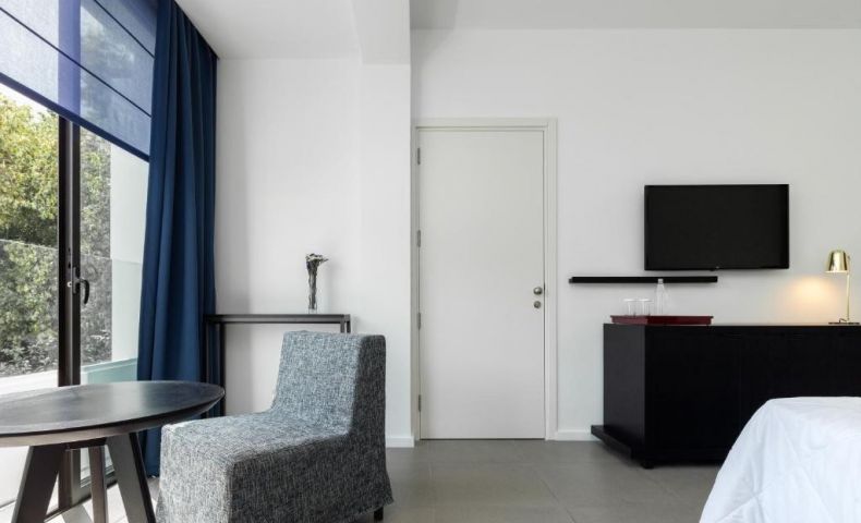 Стилният и модерен хотел е морски курорт. Разположен сред тропически градини на 5 минути пеша от пристанище Пафос. Хотелът предлага безплатен Wi-Fi, четири плувни басейна и СПА център. На разположение са също сауна и фитнес зала. Спа центърът на хотела предлага холистични процедури и масажи. Просторните стаи на хотела са оборудвани с климатик, сейф, минибар и сателитна телевизия. Стаите са с френски прозорци и тераса или балкон с изглед към градините и Средиземно море. Ресторантът на хотела сервира закуска на шведска маса, последвана от кипърска и международна кухня. В хотела има общо 4 ресторанта. Хотелът се намира в близост до летището и голф игрищата. Осигурен е безплатен паркинг.