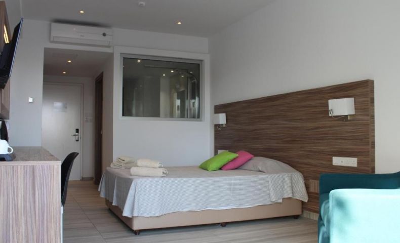 В стаите: Хотелът разполага с 21 студиа и 32 едностайни помещения, всички реновирани през 2015 г.. Оборудвани са с климатик и отопление (в спалнята), LCD телевизор, сейф, мини бар, модерен душ с WC, тераса или балкон и Wi-Fi (срещу заплащане). Стаите с една спалня разполагат и с всекидневна с разтегателни дивани. Ежедневно почистване и смяна на кърпи, смяна на спално бельо - два пъти седмично.