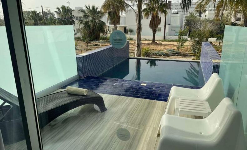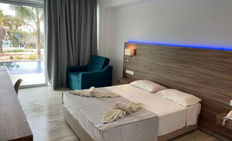Разположение: Хотелът се намира на 43 км от летището в Ларнака, на около 700 м от плажа Sandy Bay и само на 2 км от центъра на Агия Напа, лесно достъпен до всички ресторанти, пъбове и магазини, но същевременно в тих и спокоен район, построен е през 1996 г.
