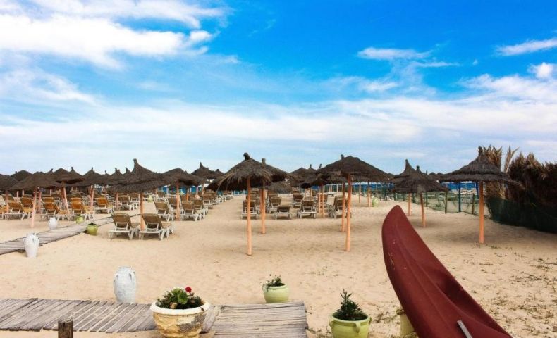 Плаж: собствен пясъчен плаж, на територията на обществения плаж на 30 м от хотела, 1-ва линия. Чадъри - безплатно, шезлонги - срещу заплащане, матраци, хавлии - не. Дължината на плажа е 200м.