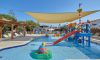 За децата: За деца от 4 до 12 години, нашият комплекс предлага разнообразие от забавления и дейности. Шестдневният детски клуб е отворен два пъти дневно: от 10:00 до 12:00 и от 15:00 до 17:30. Разполагаме и с открит неотопляем сладководен басейн с площ 50 м² и дълбочина от 30 до 50 см, който е отворен за посетители от 10:00 до 18:00 часа. За децата има открита детска площадка с ограда и пясъчна повърхност. Детски дискотеки се провеждат всяка седмица. При поискване се предлагат кошара (кошарка), количка за бебета, стерилизатор за шишета, бебефон и нагревател за шишета. Ресторантът разполага с високи столчета, а бебешка вана се предлага при поискване.