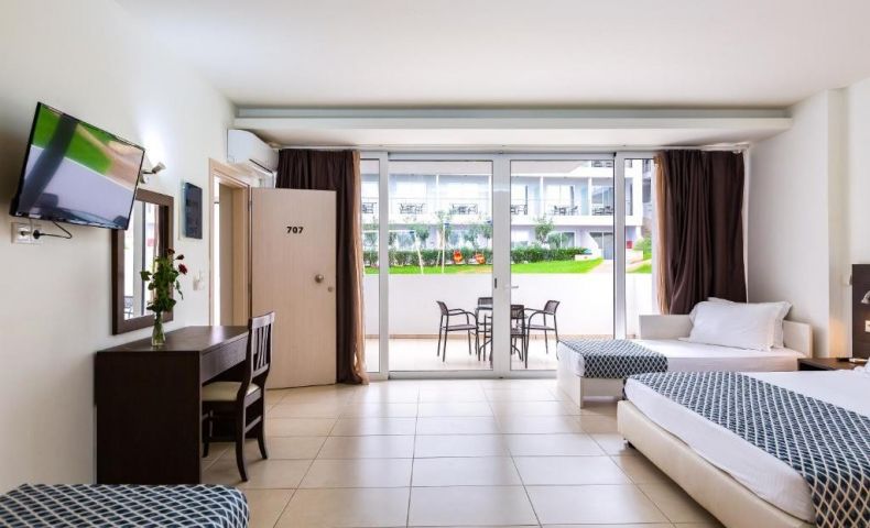 В стаите: Стаята разполага с климатик, хладилник, сейф, душ или вана, телефон, керамичен под и балкон или тераса.