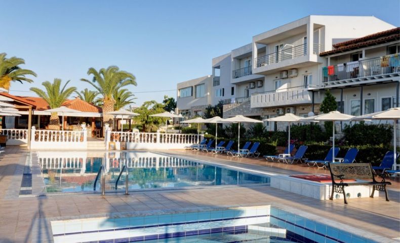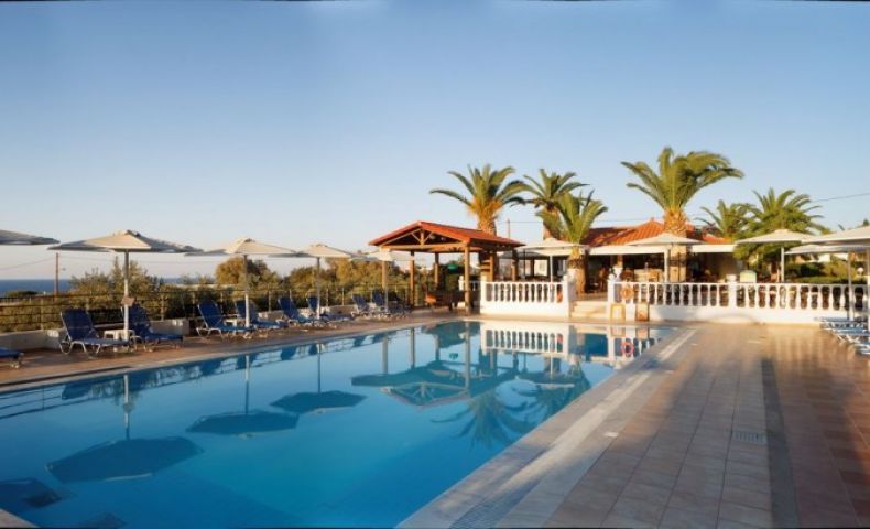 Хотелът е построен в традиционен гръцки стил и е разположен на хълм с красива гледка към морето. Подходящ за семейна почивка.