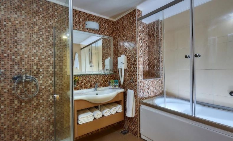 В стаите: Стаята разполага с телевизор, климатик, сейф, хладилник, душ, радио, сешоар, безплатен Wi-Fi, балкон или тераса, както и смяна на спално бельо и почистване.