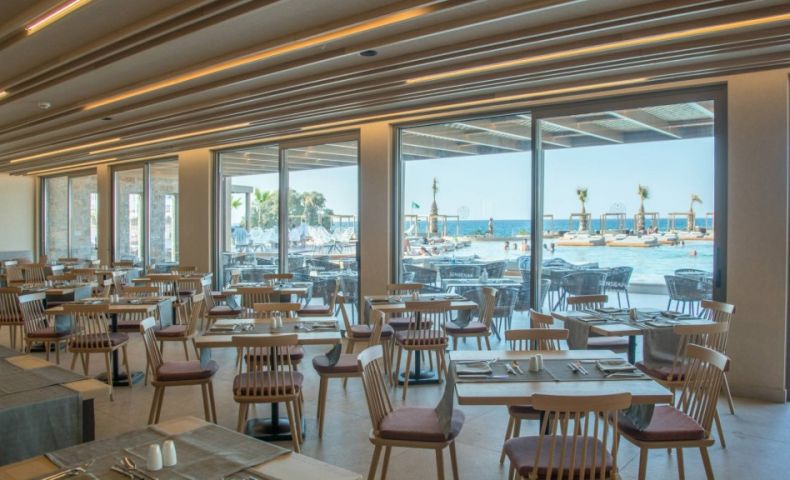 На територията на хотела: Хотелът разполага с два ресторанта (основен ресторант (сервира се на шведска маса) и гръцки ресторант а-ла-карт) и два бара, плувен басейн и басейни тип лагуна, воден парк с кът за отдих и уелнес център с успокояващ спа център и напълно оборудвана фитнес зала гарантират почивка. Разполага и с 24-часово обслужване на рецепция, паркинг.