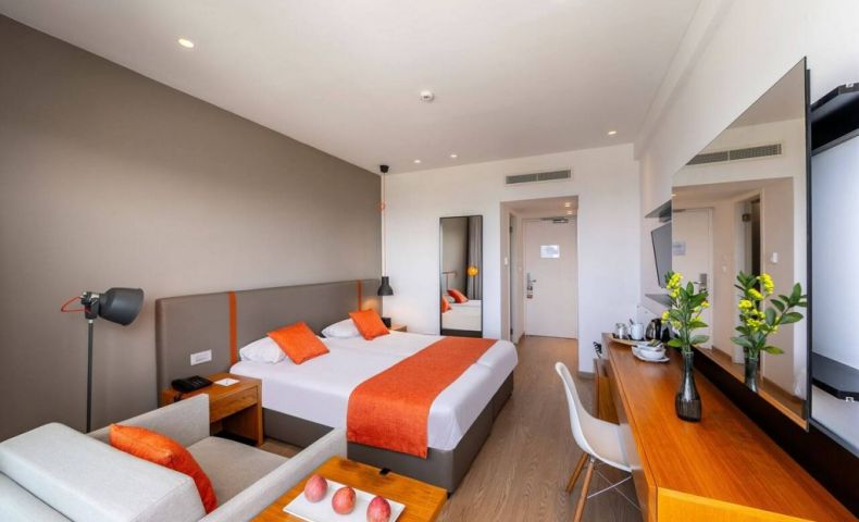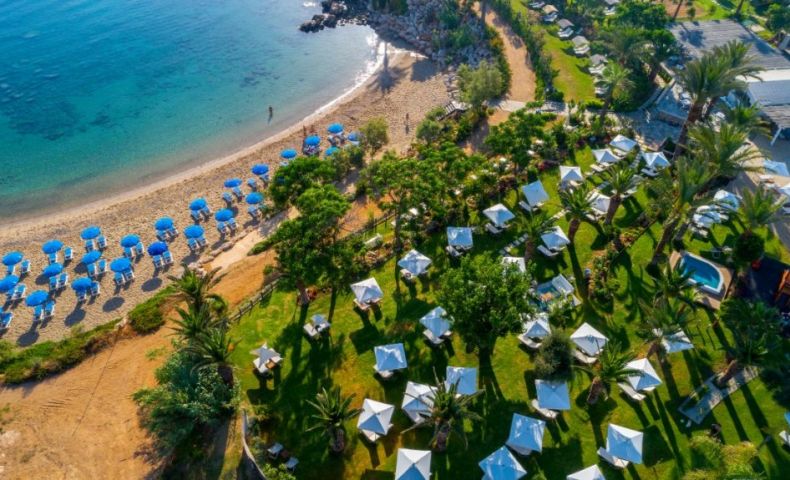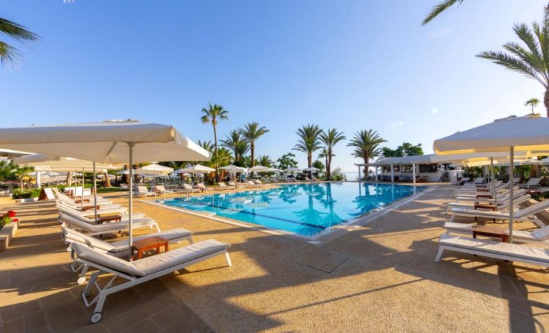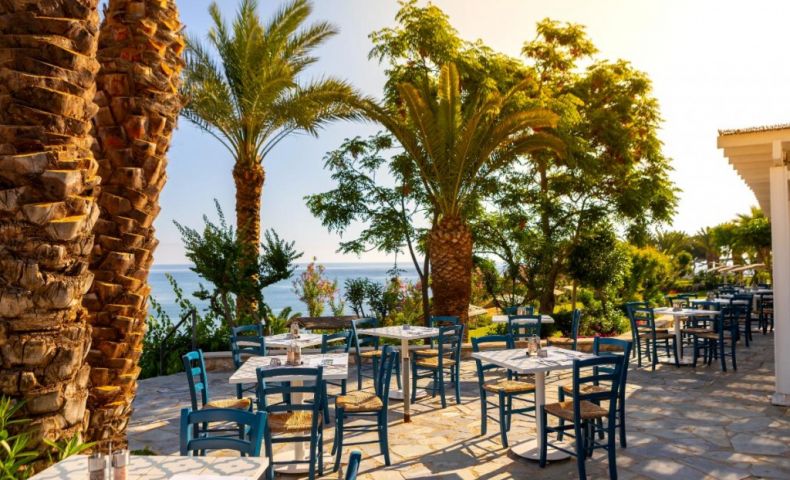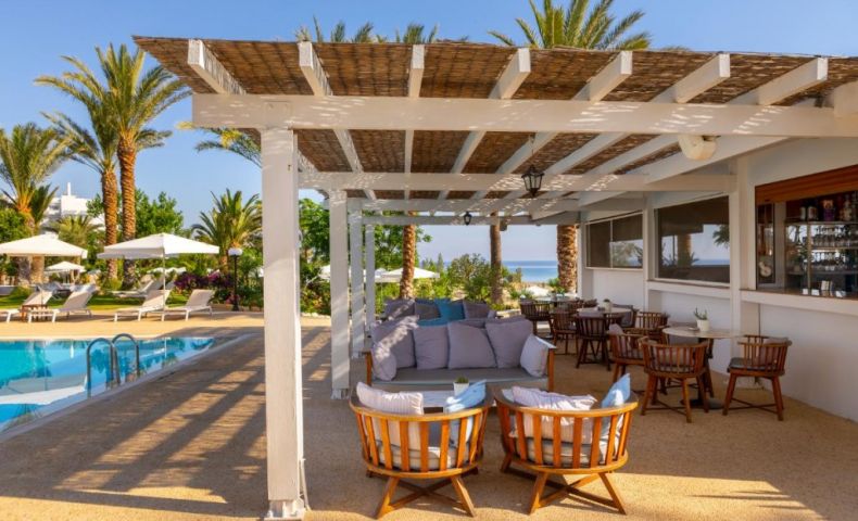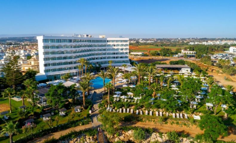 Курортът е заобиколен от буйни озеленени градини, до живописно рибарско пристанище, на 5 километра от село Протарас. Светлите стаи разполагат с обзаведен балкон, климатик, сателитна телевизия и самостоятелна баня със сешоар. Разполага с открит басейн с обособен детски кът, тераса за слънчеви бани, СПА център, фитнес център, тенис корт и анимационна програма. Ресторантът предлага международна и регионална кухня, специално детско меню и тематични вечери. Баровете на хотела предлагат богат избор от топли и студени напитки и алкохолни коктейли. Извън хотела гостите ще намерят огромно разнообразие от магазини и кафенета, разнообразие от развлечения, както и оживен нощен живот. Ето защо хотелът е идеален както за двойки без деца, така и за семейства.