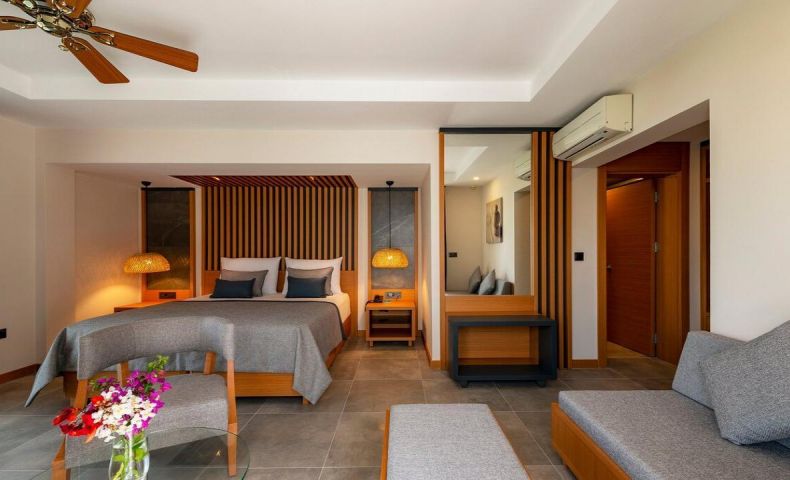 Хотелът се намира на 30 км от летище Милас, на 9 км от центъра на Бодрум, в района на Торба, на брега на морето. Последно реновиран през 2022/3 г. С обща площ от 70 000 m².