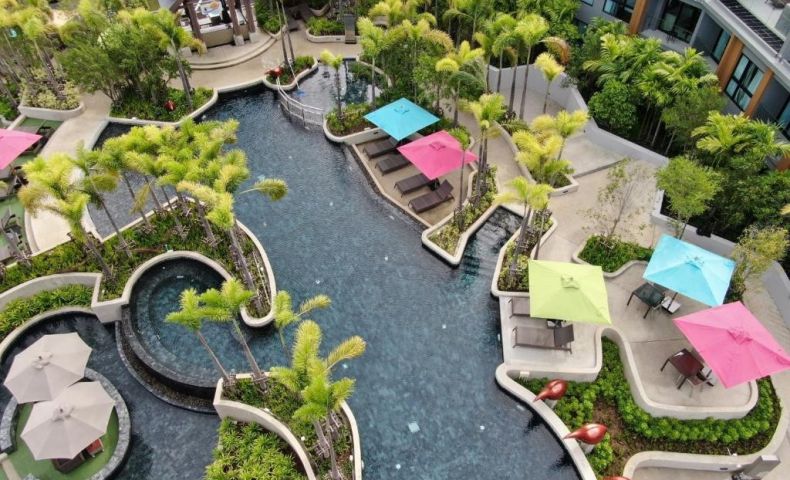 На територията на хотела: Общо 6 плувни басейна, четири от които на покрива, детски басейн, основен ресторант, бар на басейна, бар на покрива с невероятна панорамна гледка, бар на ниво лоби (сервират Starbucks кафе), сауна, 2 фитнес зали, 2 детски клуба, зона за работно пространство, библиотека.