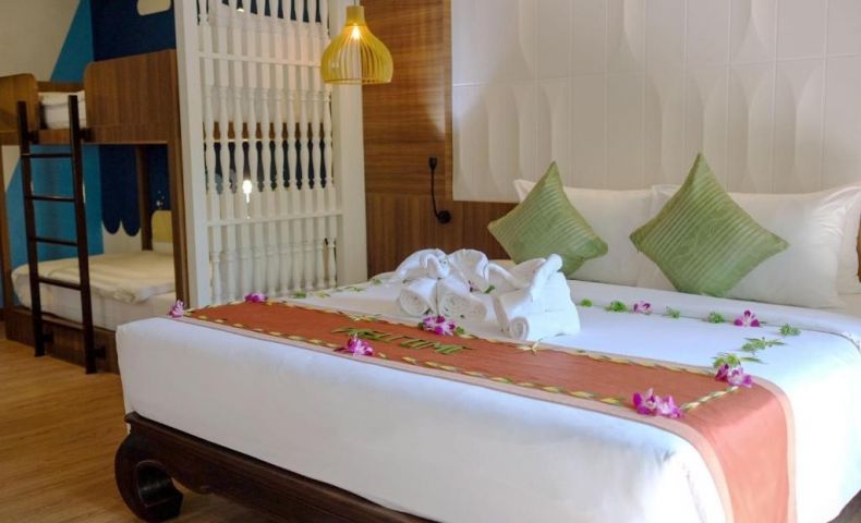 Family Bunk Bed – 40 м2, гледка към градината или града. Тази стая е едностайна и разполага с едно двуетажно легло и едно голямо двойно легло, което означава, че капацитетът е 2 възрастни с 2 деца или 3 възрастни с 1 дете. Оборудване е с - индивидуален климатик, самостоятелен балкон, душ с вана, телефон, сателитна телевизия, сешоар, мини бар, сет за приготвяне на чай и кафе.